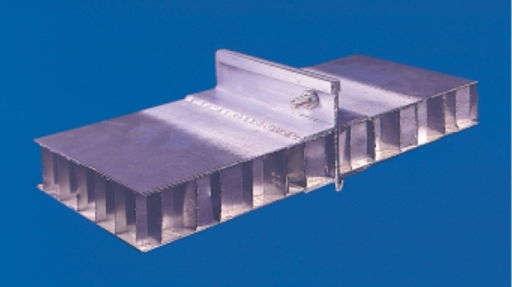 | 構造および材質 | パネルの構造 | ハチの巣状(ハニカム)の核をプレートで挟み込み周囲を連続溶接した構造です(個々のパネルが気密性を保ち、浮力を有する構造となっています)。 パネルの厚さは300%浮力となるよう設計しています。 |